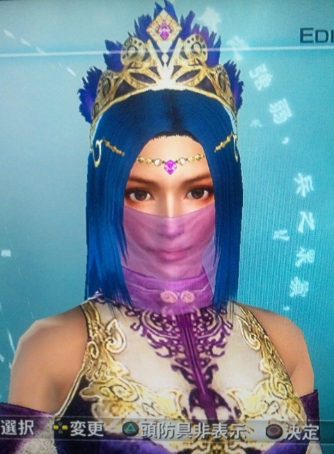 頭:闘衣兜(紫) 胸:舞姫服(紫) 腕:薫風手袋(紫)
