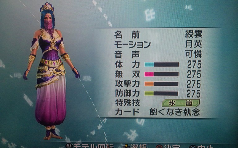 腰:舞姫腰巻(紫) 靴:舞姫靴(紫) 武器:月英