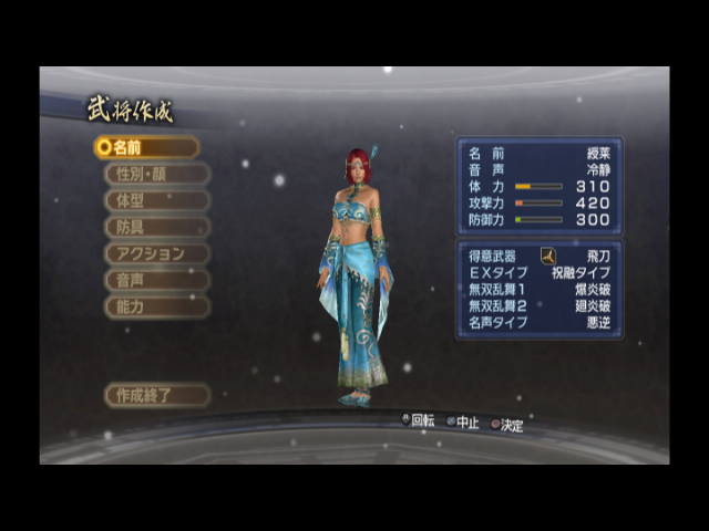 声:冷静(+5) 身長+3 体型+5(グラマー) 特殊技:炎波 カード:青龍の志
